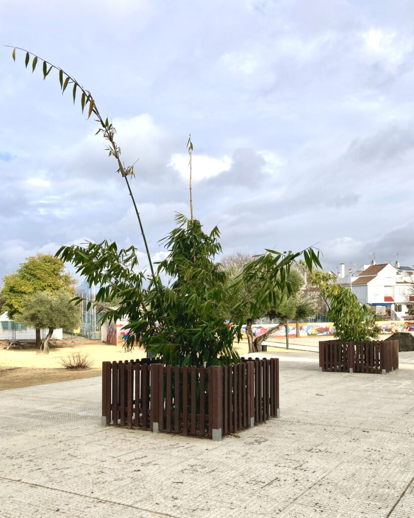 - Patio del alumnado de Educación Primaria: en este espacio existe un área central con pavimento duro y carente de sombra que, a través de esta intervención, se ha complementado con dos bambúes medianos que dotarán de sombra natural a este espacio y posibilitarán, a su vez, la bajada de temperatura que alcance el pavimento en los meses más calurosos.