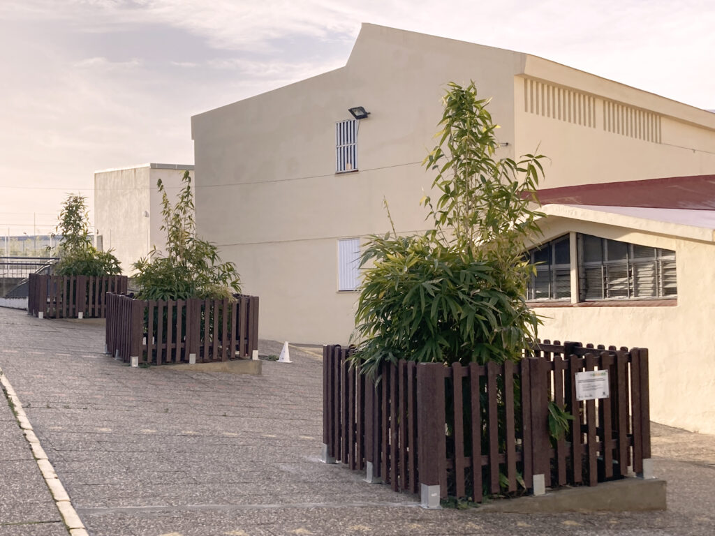 El vallado de protección de los 3 bambúes de caña amarilla se ha fabricado con perfiles de plástico reciclado y reciclable. Para lo que, junto al Área de Medio Ambiente del Ayuntamiento de Mairena del Aljarafe, se ha realizado un taller de concienciación sobre la importancia del reciclado con el alumnado de 3º de Primaria, llevándose a cabo una actividad de recogida de residuos plásticos en el centro educativo para su posterior transformación en mobiliario.